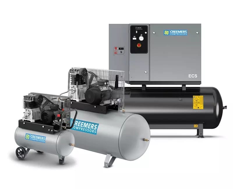Creemers Compressors is continually developing to meet the highest standards of every sector. Whether you need a portable piston compressor for light tasks or a powerful screw compressor for heavy industrial applications, Creemers has the ideal solution. Additionally, Creemers offers oil-free compressors, essential for industries where 100% oil-free compressed air is a must, such as pharmaceuticals, food and beverage, electronics, and textiles.