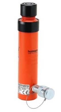 The Holmatro single-acting hydraulic cylinder product range includes standard cylinders with spring or gravity return, flat cylinders, telescopic cylinders, short stroke cylinders, hollow plunger cylinders and assembly and construction cylinders.  The capacities of the Holmatro single-acting cylinders range from 10 to 100 ton. Laco sells and rents most Holmatro cylinders.